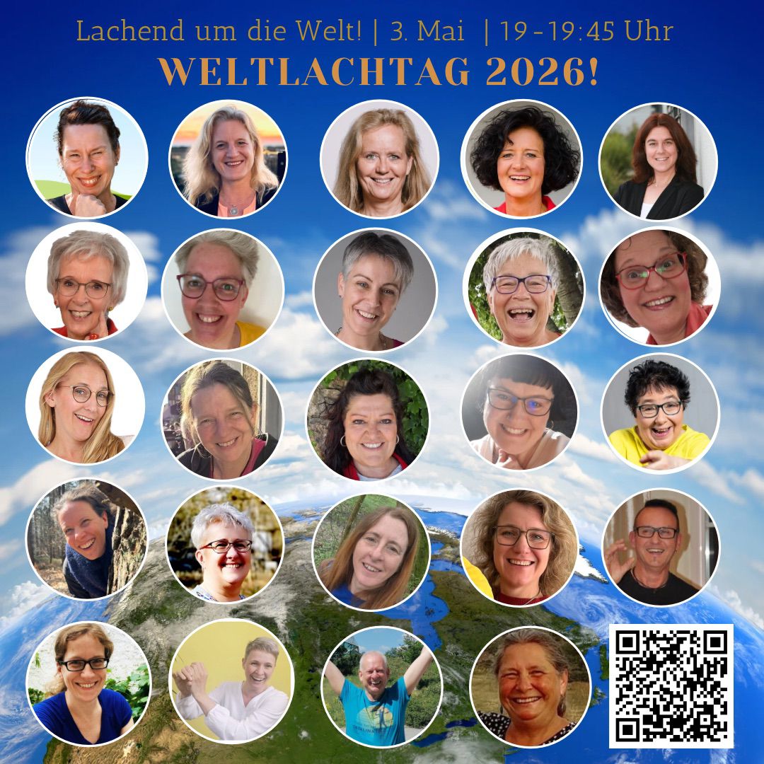 Ein besonderer Teil dieses Tages ist das Online-Event „Lachend um die Welt“ von 19:00 bis 19:45 Uhr. 24 Lachyoga-Trainerinnen und -Trainer gestalten gemeinsam eine lebendige Reise rund um den Globus. Jede Person bringt ein Land, eine eigene Qualität und eine passende Lach- oder Atemübung mit – so entsteht ein vielfältiges, gemeinsames Erlebnis über alle Grenzen hinweg.